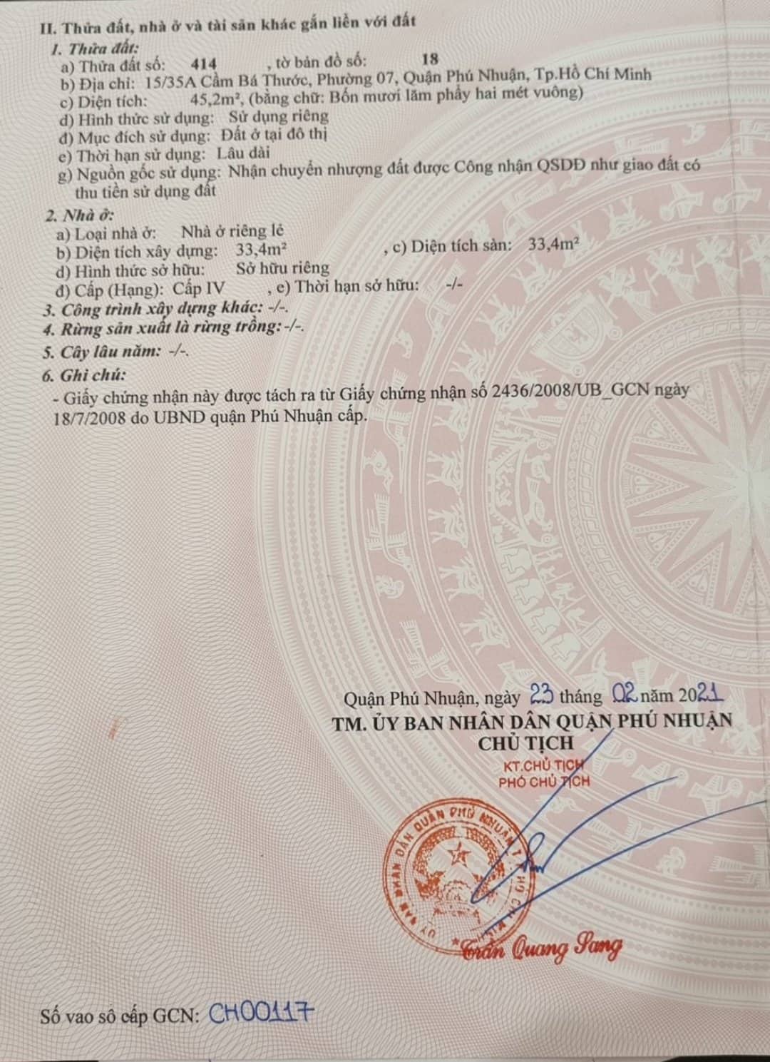 - Diện tích: 110m2, thổ cư đầy đủ. Sổ hồng riêng.